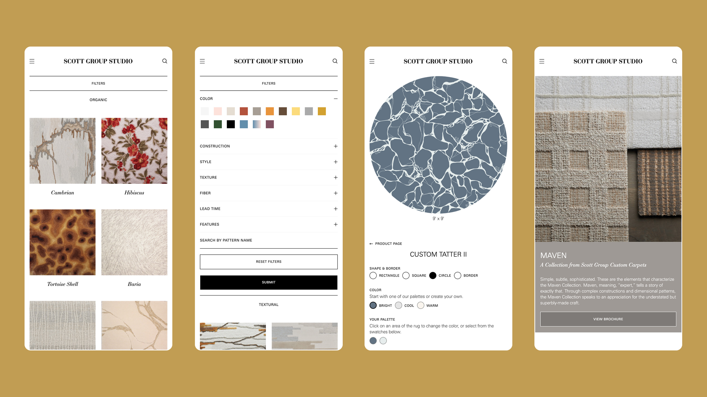 A website redesign that honors the detail and craftsmanship woven into every custom rug and carpet that Scott Group Studio creates.